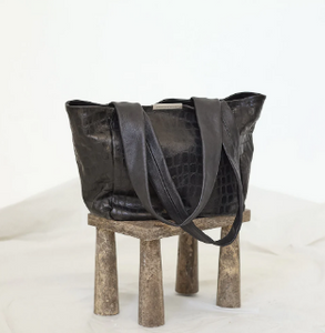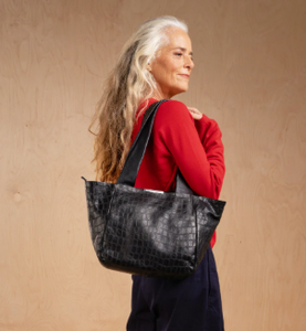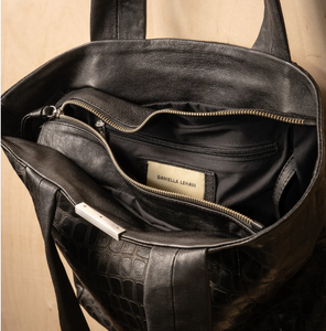 The leather’s texture was developed as a contemporary interpretation of one of Daniella’s most iconic archive leathers, first introduced two decades ago – a creative variation on croco, embossed on soft Italian sheepskin with a geometric pattern, wax finish, and the distinct individuality of handcrafted leather.