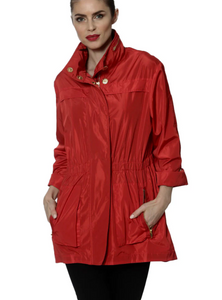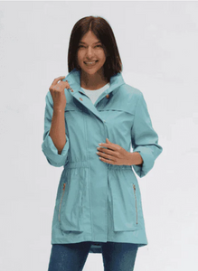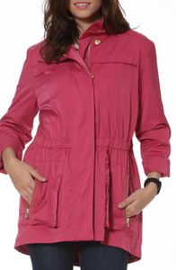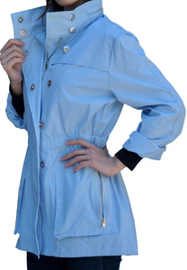 New fabric developed by Ciao Milano. Soft durable flowing fabric that is not only 100% water proof but extremely rich looking. Looks like a million dollars. Same style, hardware, specs and fit with zip in pouch hood as the famous Tess style.