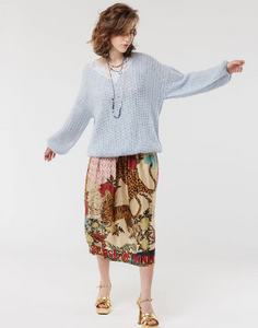 Fabulous mixed print pleated midi skirt with an elastic waist. 100% Viscose