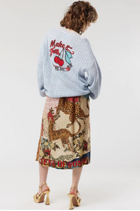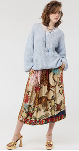 Fabulous mixed print pleated midi skirt with an elastic waist. 100% Viscose