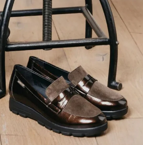 Our Carima women’s loafer takes classic a few notches higher, with a chunky sole featuring a subtle wedge for a touch of extra lift. Comfort and style come together in this sleek shoe: Bold design elements pair with the timely charming penny keeper aesthetic to create something new and exciting—blurring the lines between genres to create something both absolutely professional and undeniably cool. And speaking of cool, our unique perforated leather-lined insole circulates fresh air through the footbed with every step. That all-day ease of wear extends through the elasticized cut-outs that make slipping them on and off a joy. And that outsole does more than just lift: it’s slip-resistant and packs our exclusive SHOCK-ABSORBER heel insert for the lightest stride you can imagine.