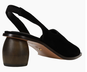 Material: Black Kid SuedeClosure: SlingbackLining: SyntheticOutsole: Leather Heel Height: 2.3 in