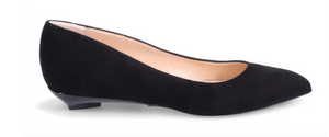 Material: Weatherproof Cashmere Suede Heel: 3/4 Inch Patent Wedge/ 20mm Wedge Lining: Kid Leather Midsole: Poron Outsole: Leather Injected with Rubber Shoe Care: Wipe with a damp soft cloth Made in Italy.