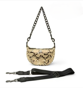 Always with me...Tiny Dancer in my hand...The hobo silhouette is the classic seventies fashion statement. Now reinvented in our signature quilting and sized perfectly as the chicest all-day crossbody to the perfect companion for date night! So many ways to wear this beauty...use the crossbody strap for a high or low crossbody or shoulder bag...or the chain strap as a handbag or clip both sides together for a fortune style bag...our favorite way...crossbody with the chain - a perfect combo...take the Tiny Dancer our for a spin...